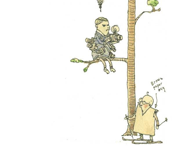 The woods are full of fashion scouts (the newest fashion trends arefirst seen amongst us skiers), in order not to reveal my fashionsecrets I always bring a large paper bag to wear.