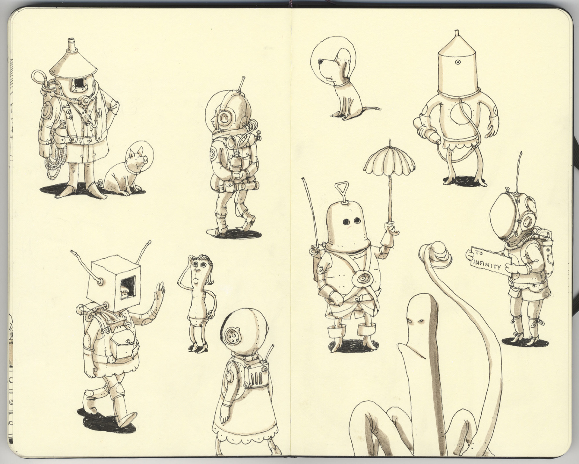 Sketchbook pages with some drawings to fill it all out